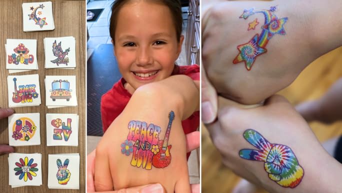 Amazon Com Tie Dye Temporary Tattoos Birthday Themed Party Supplies Decorations Favors 8 Sheets 96pcs Colorful Decor Cute Stickers Tattoo For Class School Prizes Gift For Kids Boys Girls Carnival Rewards Toys